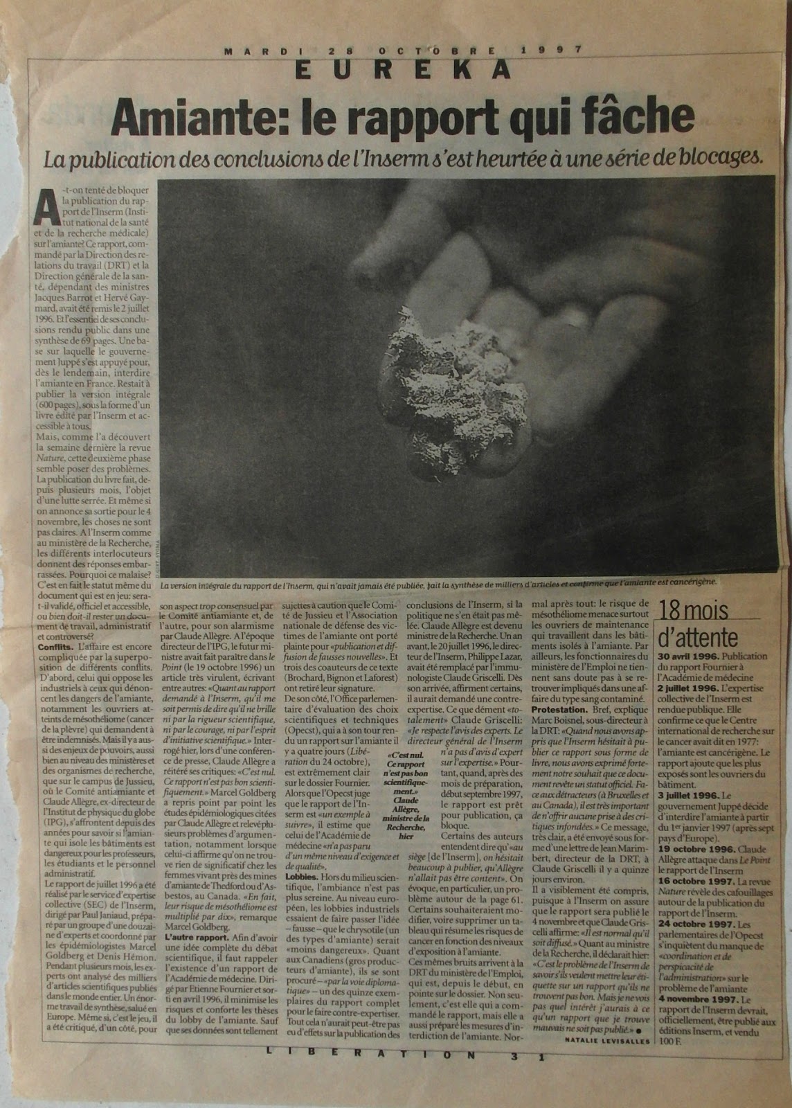 Ce témoignage involontaire rappelle qu’à l’époque il y avait encore des articles et des émissions sur la nocivité de l’amiante. Il n’y en aura bientôt plus. Plus du tout !