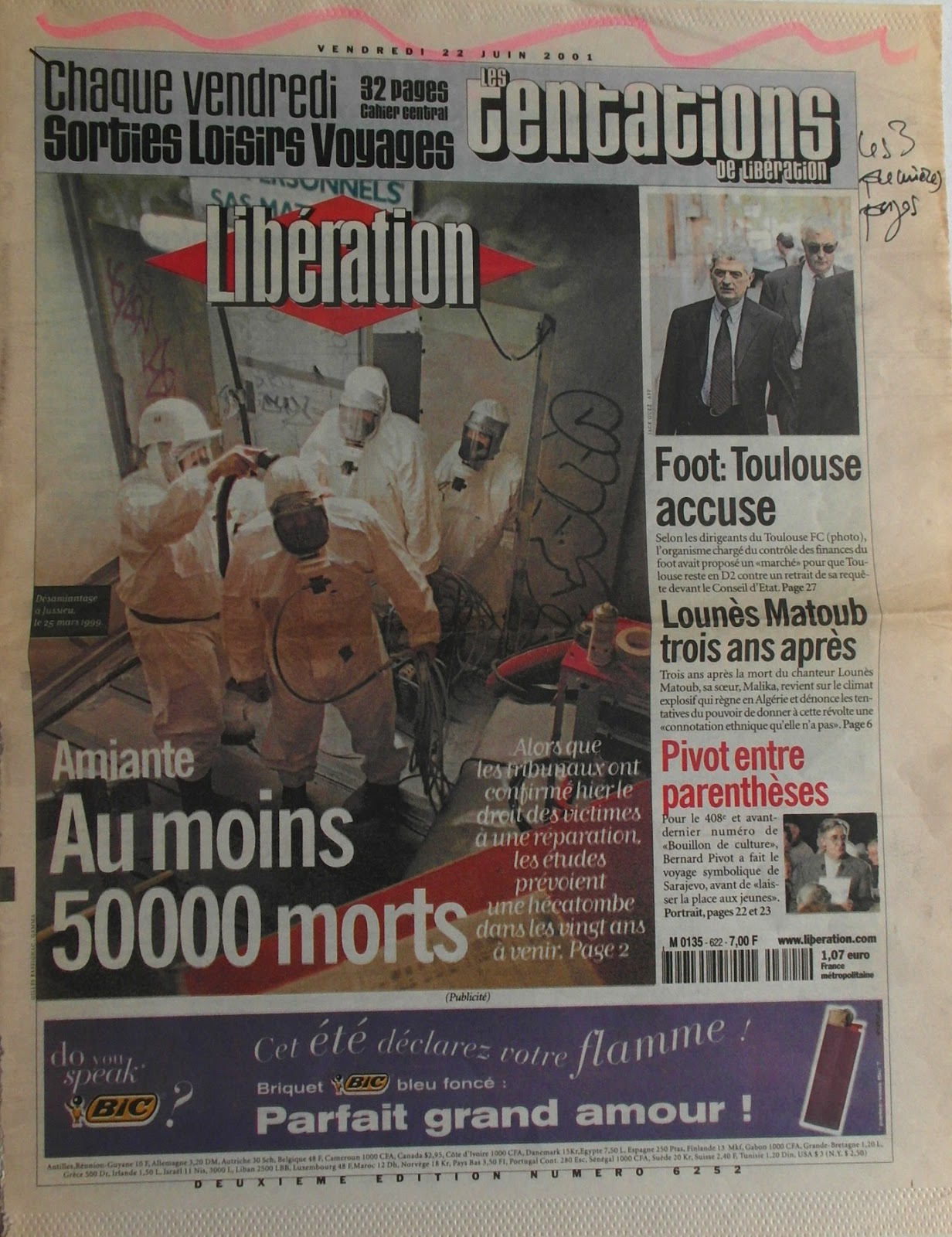 J’évoquais rapidement le cas de Jussieu et des industries de l’amiante, les informations concordantes qui parlaient de fibroses et de cancers… Il s’accrochait à sa propagande. En guise d’au-revoir, je lançais : « Vous n’allez pas tarder à avoir d’autres informations et, malheureusement, ça va faire des victimes !« .