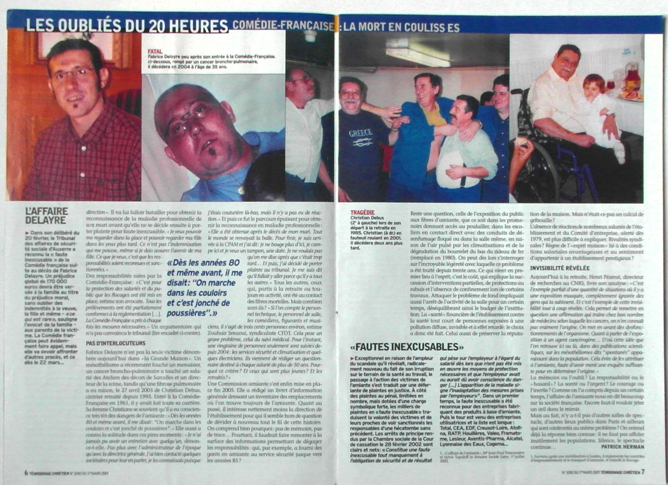 Très sympathique, Christian était connu de tous. Cependant, nous n’apprendrons – par hasard – sa maladie et son décès qu’au début de l’année 2005. Jusqu’à ce moment, sa veuve était restée isolée et démunie. Le service médical de l’établissement ne l’avait pas aidée et aucun membre de la direction n’avait daigné la recevoir ou lui répondre (elle était pourtant une ancienne de la maison). Nous lancerons aussitôt une procédure de reconnaissance de maladie professionnelle (à 1 mois près, Madame Debus et sa fille ne pouvaient plus agir !).